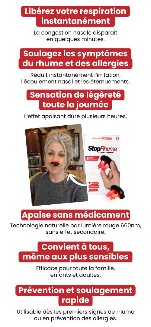 StopRhume utilise la lumière rouge 660 nm pour libérer efficacement le nez encombré.