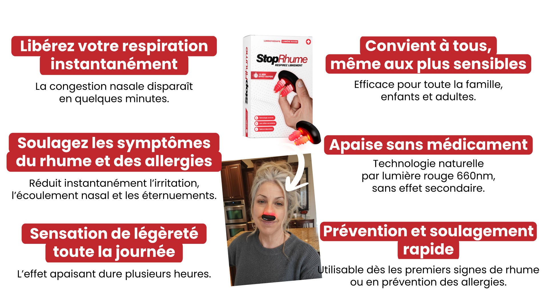 StopRhume utilise la lumière rouge 660 nm pour libérer efficacement le nez encombré.